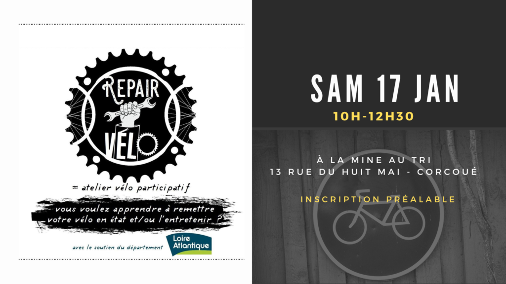 Adhésion à l’association nécessaire (5€). Inscription préalable nécessaire à repairvelo@recyclerielegrenier.org (pour un créneau de 1 heure / le nombre de places est limité.) Une initiative qui a eu le soutien du département Loire-Atlantique